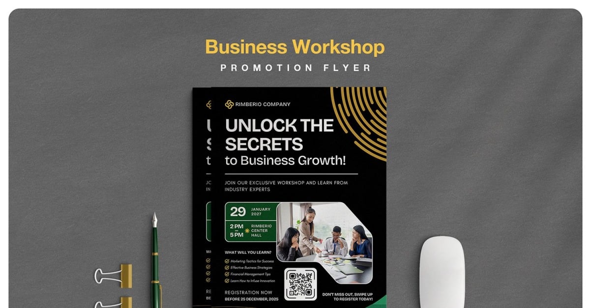 Professional Business Workshop Flyer Template. This layout is suitable for any project purpose. Very easy to use and customize. Feature: A4 Size Template3 mm BleedPrint ReadyCanva TemplateAdobe Photoshop Cs4/laterAdobe illustrator Cs4/Later300 DPIPhoto: Links available in the Help file Files Included: PSD filesAI filesEPS filesPDF filesHelp file Important: ALL IMAGES IN PREVIEW …