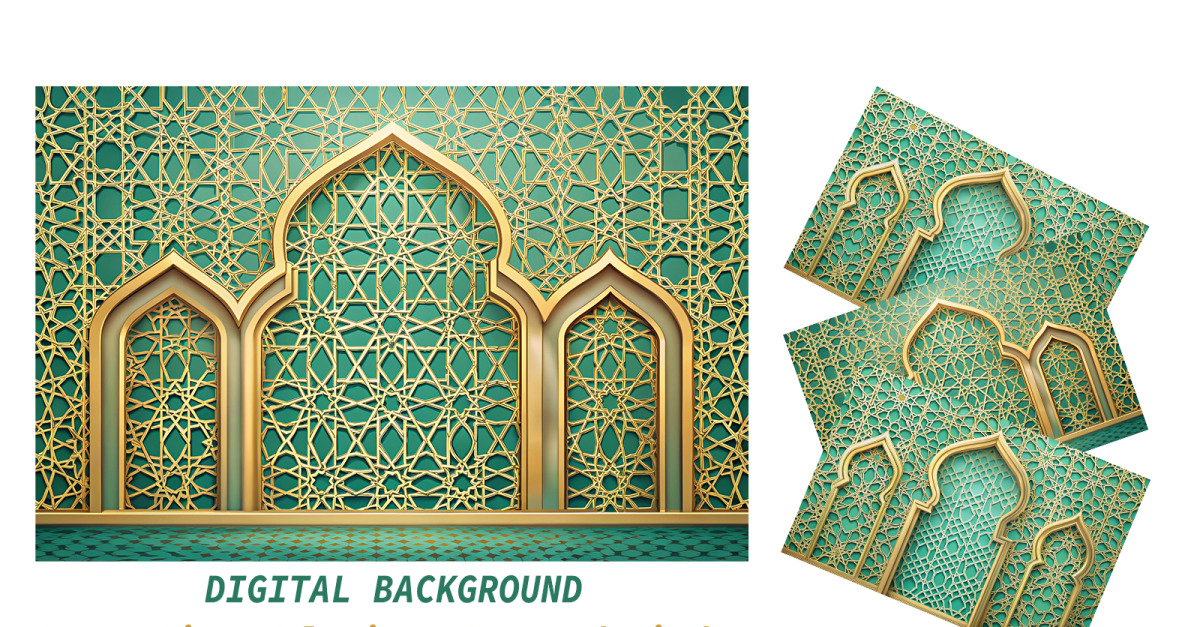 Soft gold to aqua with layered decorative Islamic gates and window motifs Perfect for • Gift wrapping • Greeting Cards • Planners/Journals • Invitations • Scrapbook Decorations • DIY Projects • Stationery • Backgrounds/Wallpapers • Wall art • Tumbler Wraps • Notebook Covers and many other craft projects. YOU WILL …