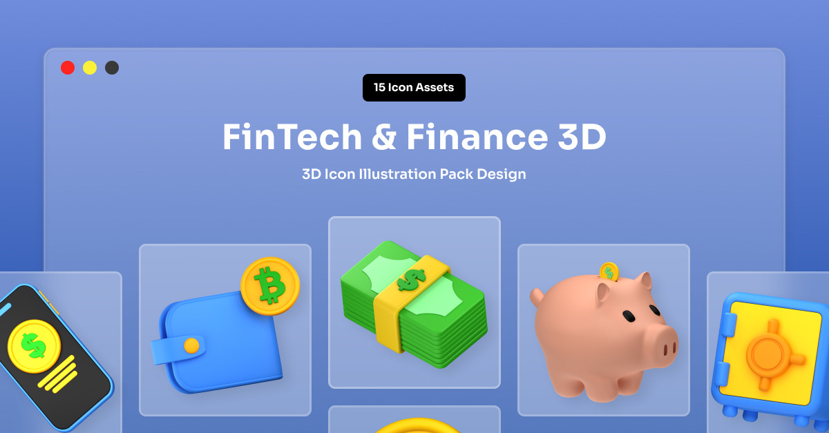 Modern 3D icons for fintech and digital banking. Perfect for apps, dashboards, and presentations with a clean, trustworthy, and professional look. **Highlights:** – 15 unique 3D assets – Fully editable color in Blender – Well-organized layers – High Resolution PNG (3000 x 3000 px) – Ready-to-use transparent icon **Includes Files:** …