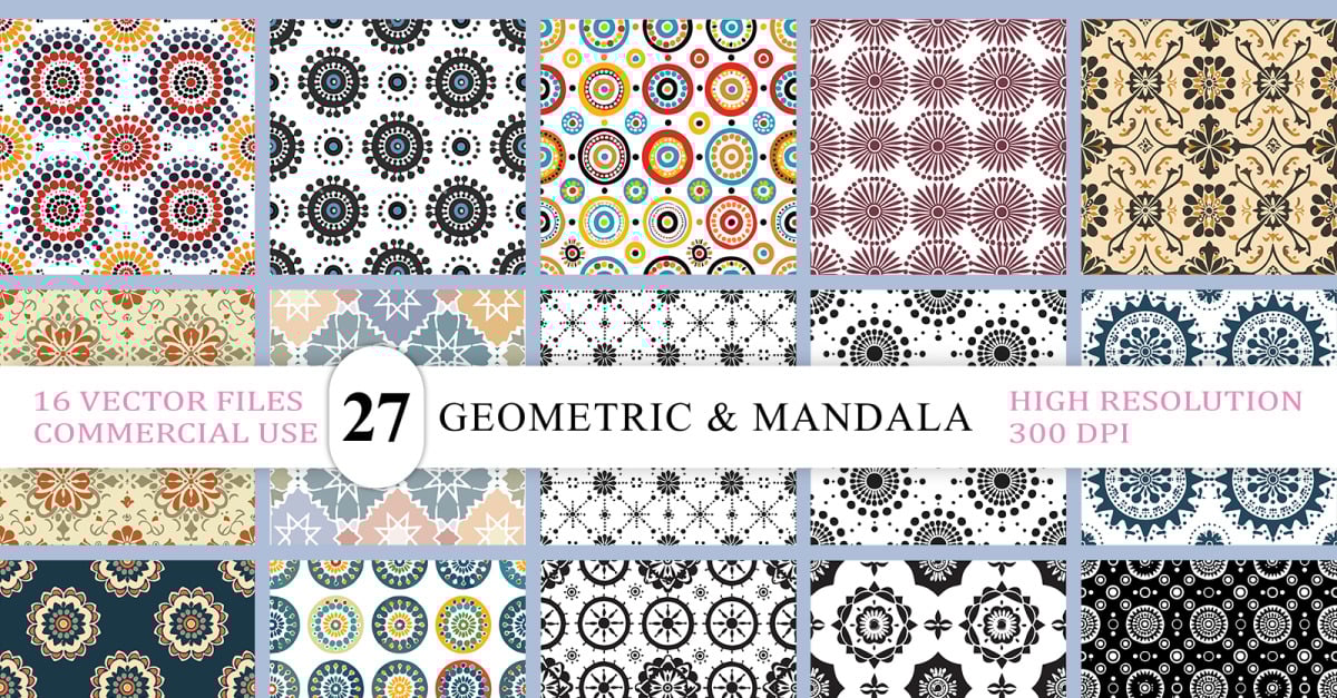 16 Geometric & Mandala Seamless Pattern Vector Bundle | Premium Quality | Commercial Use Ready This bundle features geometric, circular, and mandala-inspired seamless patterns in both vibrant and neutral tones. Provided in EPS (RGB), AI (CMYK), and JPG formats, making them perfect for both print and digital projects, The vector …