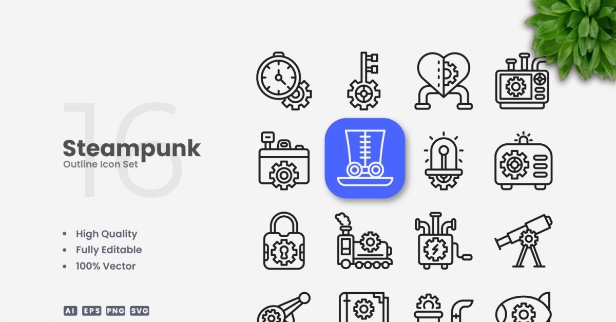 Read More »16 Steampunk Outline Icons Set #533848