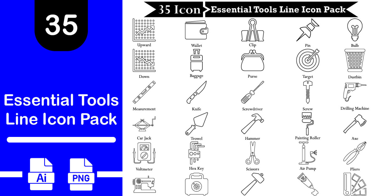 Beautiful, meticulously designed 35 Essential Tools Line Icon Pack. Perfect for use in designing and developing websites, printed materials, presentations, Promotional Materials, Illustrations, Info graphics or any type of design projects Features: • 35 Essential Tools Line Icon Pack • Fully editable 100% Vector AI files. • EPS File for …