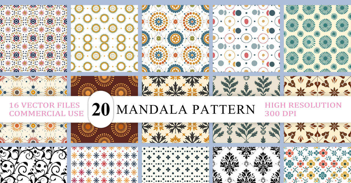 16 Ornamental Mandala Seamless Pattern Vector Bundle | Premium Quality | Commercial Use Ready This collection features 16 seamless ornamental mandala and vintage tile-inspired vector patterns. Provided in EPS (RGB), AI (CMYK), and JPG formats, making them perfect for both print and digital projects, The vector formats are fully editable …