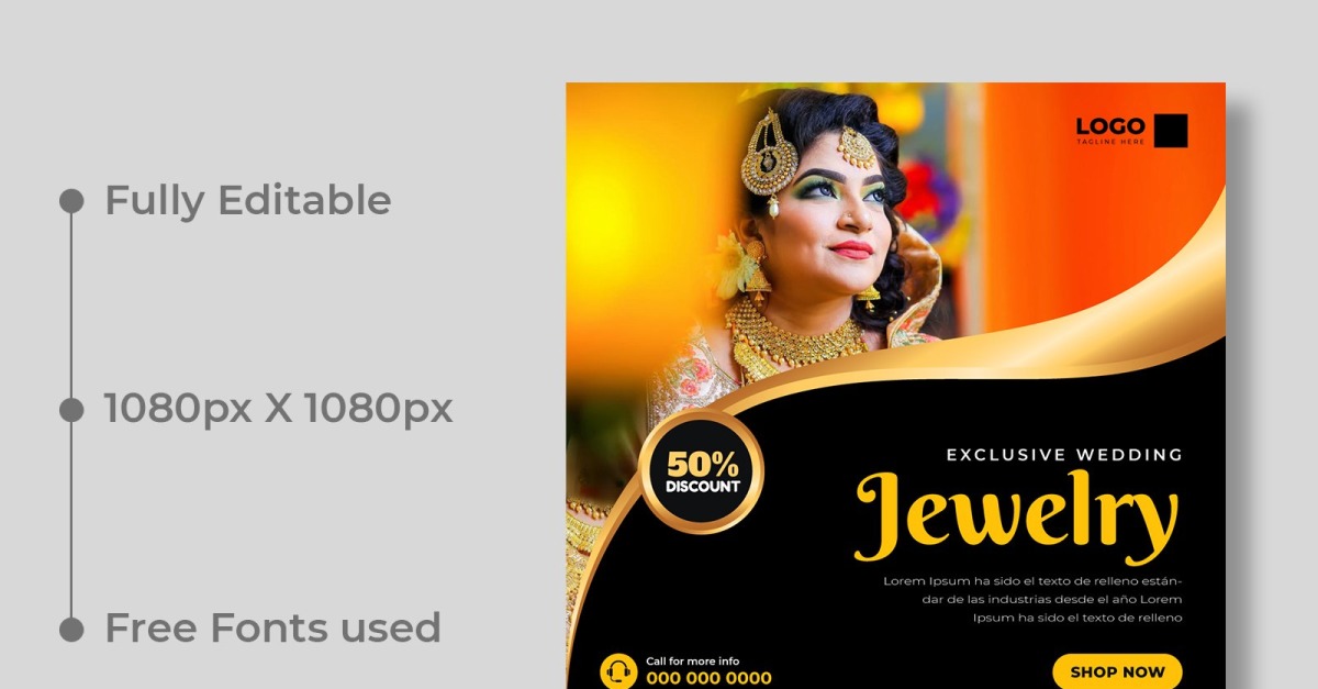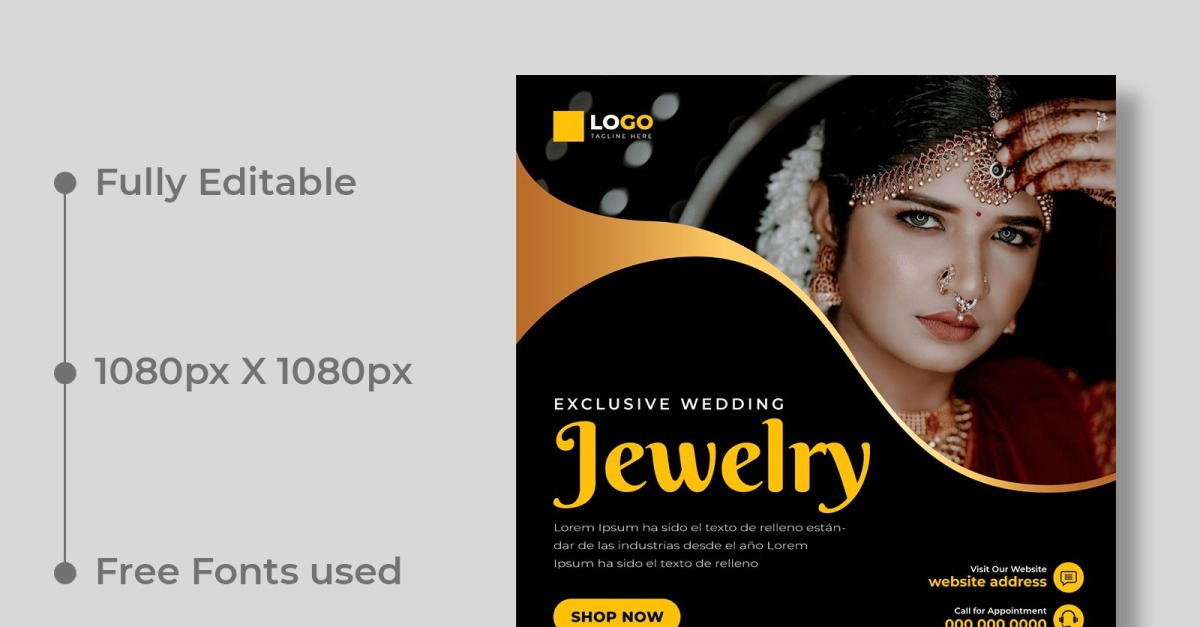 Showcase your exquisite wedding jewelry with this elegant Social Media Post Banner Template, crafted in Adobe Illustrator. Featuring a stylish layout, delicate accents, and sophisticated typography, this template perfectly highlights luxury bridal pieces. Fully customizable, you can easily adjust colors, fonts, and images to match your brand’s aesthetic. Ideal for …